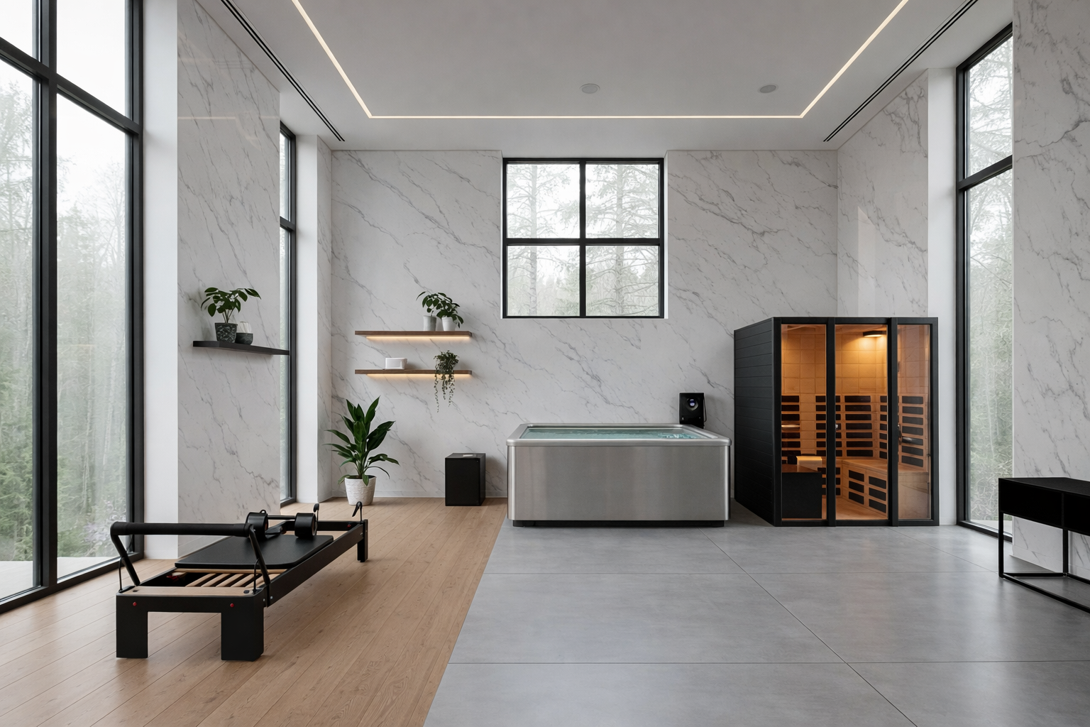 Beautiful architecture deserves purposeful design. Witness how clinical-grade wellness equipment transforms an underutilized room into a dedicated sanctuary for movement, recovery, and longevity, where every element serves your commitment to aging well and living fully.